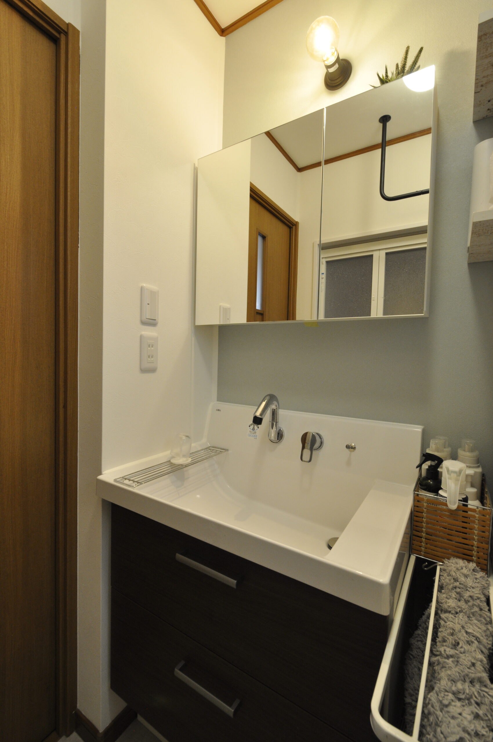 洗面はオシャレに!!それでもって使い勝手の良い仕様にしました。