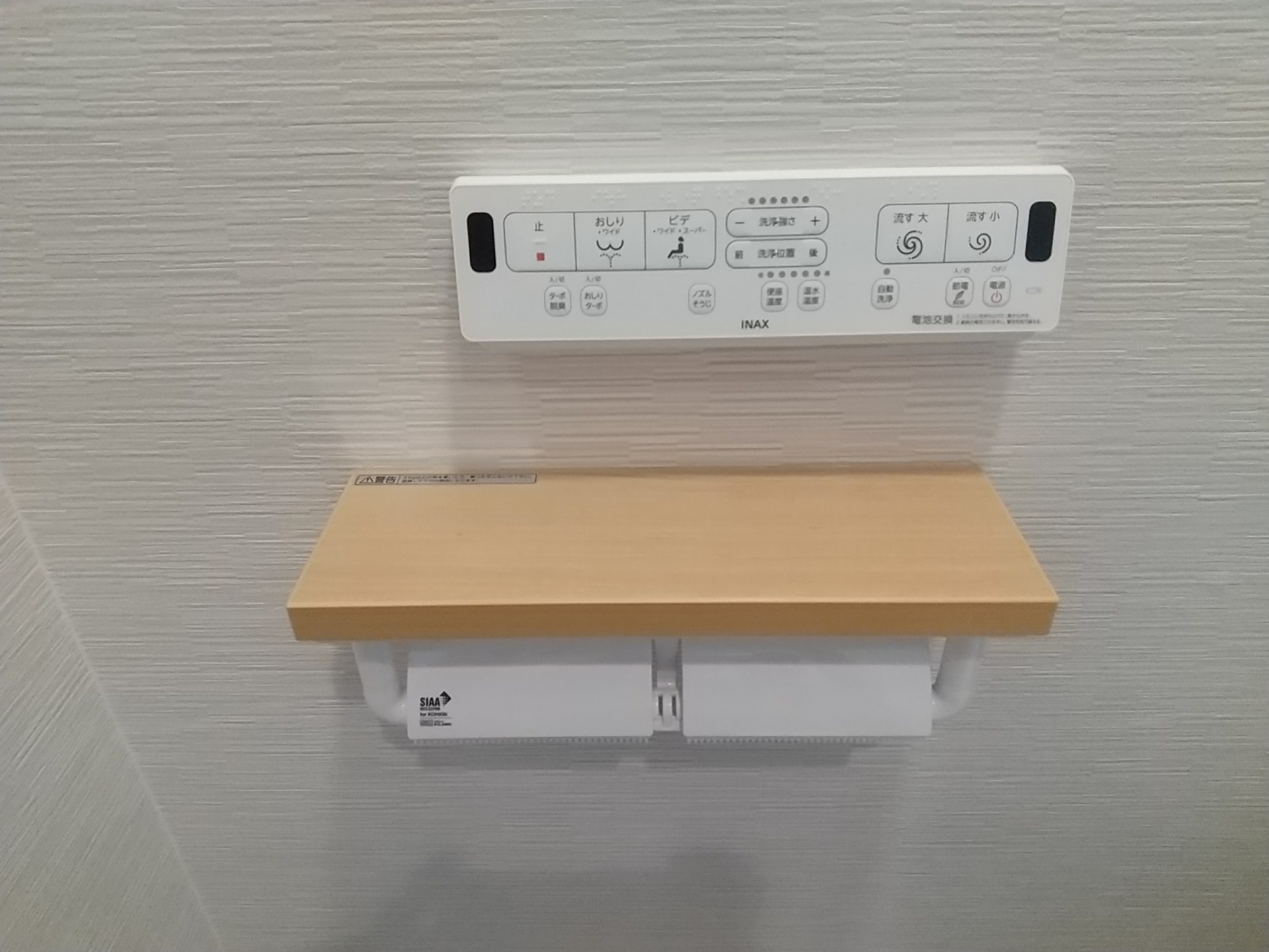 紙巻き器、換気扇、床クッションフロアも同時に工事することで、内装が一新されました。