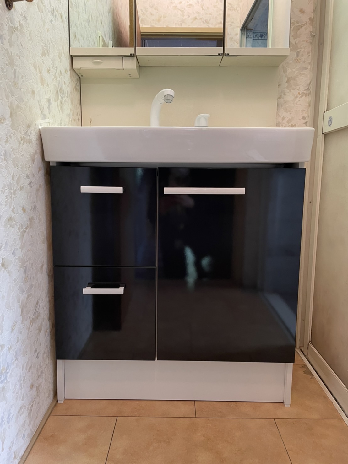 工事完了後新しい洗面ボウルが設置されていく過程も真剣に見て下さり、設置後は非常に喜んで頂きました。