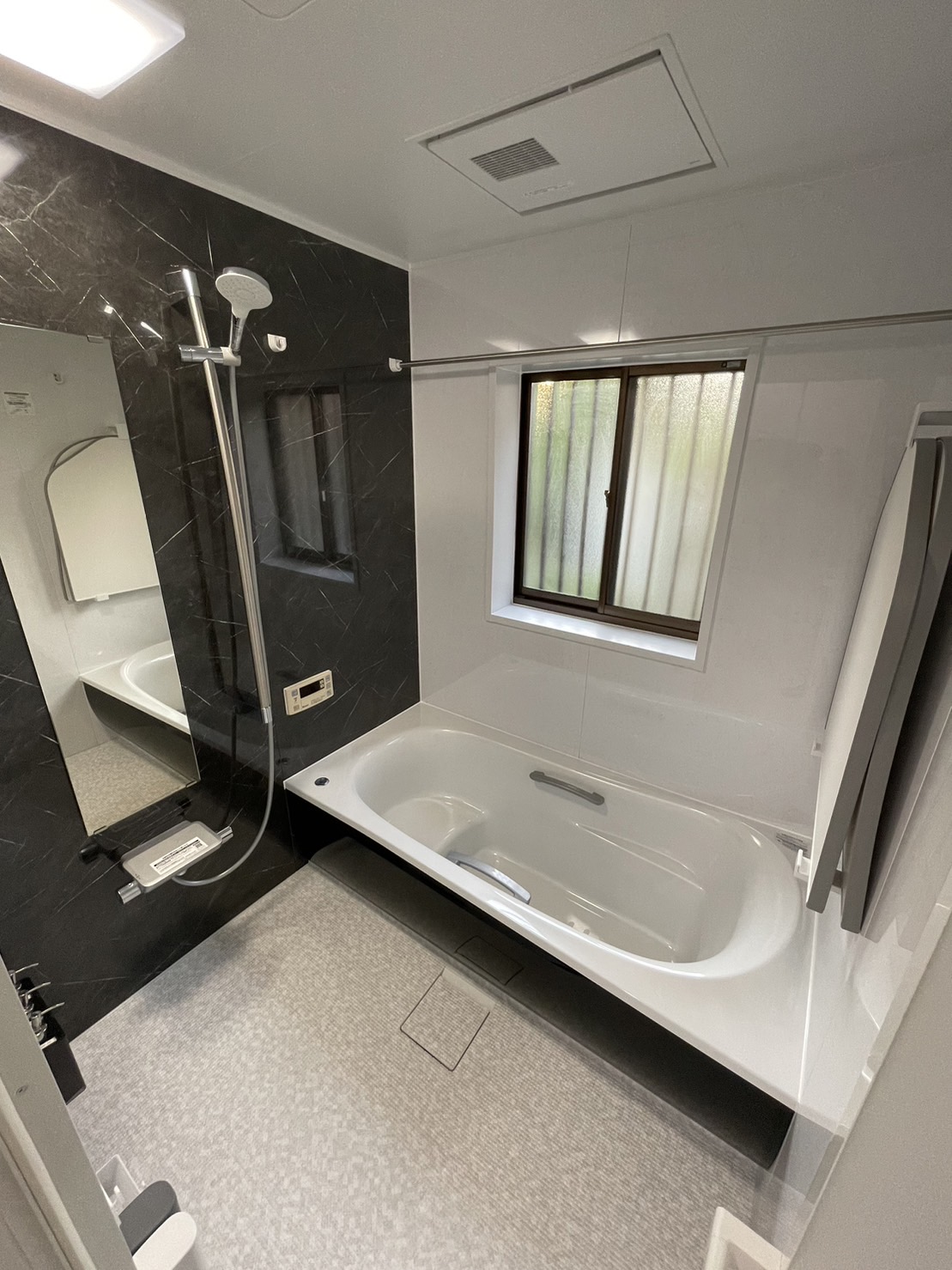 寒さ対策で浴室暖房乾燥換気扇を新設し、浴槽はお手入れ簡単な人工大理石浴槽を選択頂きました。
