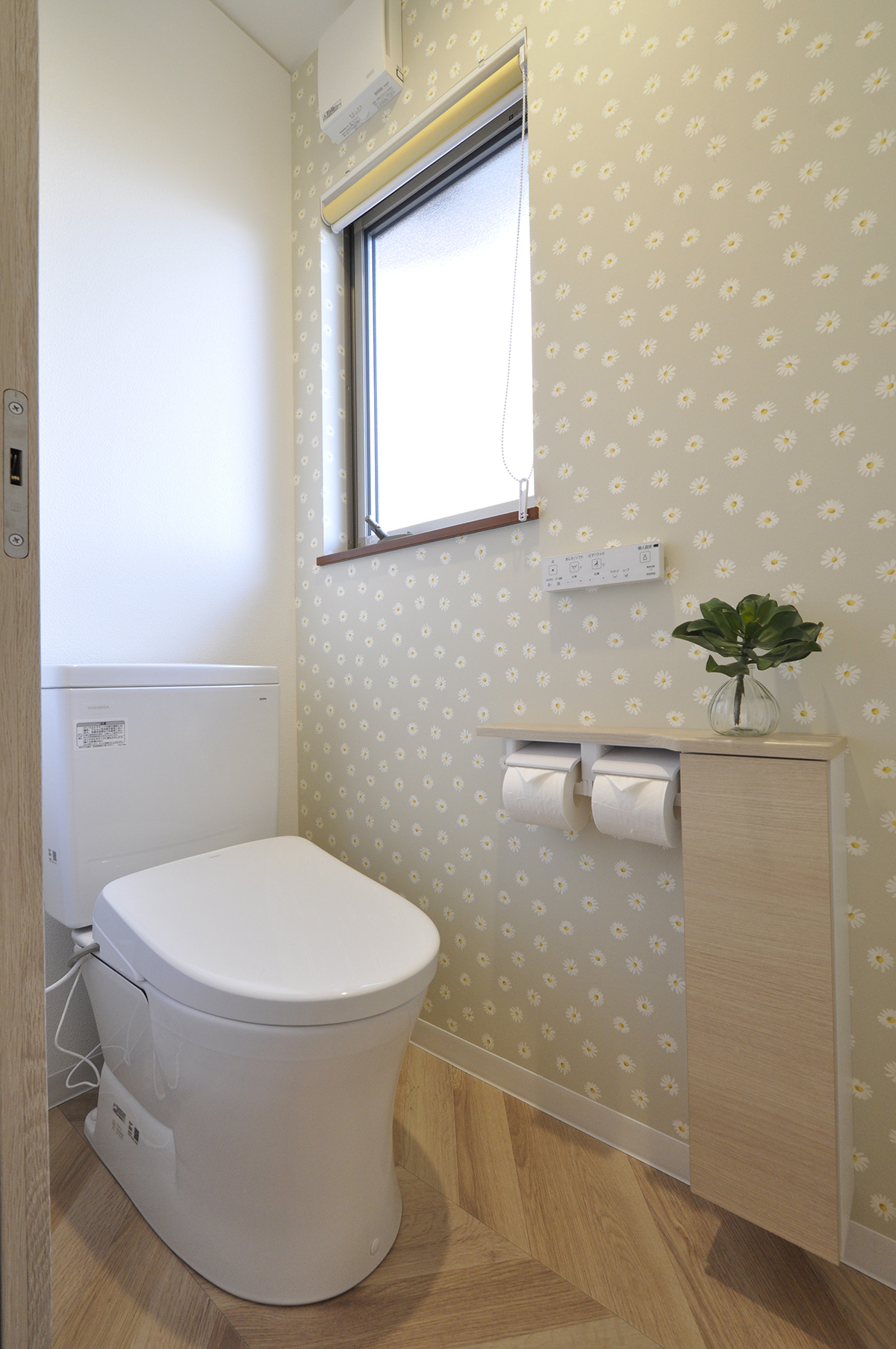 内装も一新し、紙巻器とカウンターが一体となった収納も設置しました。