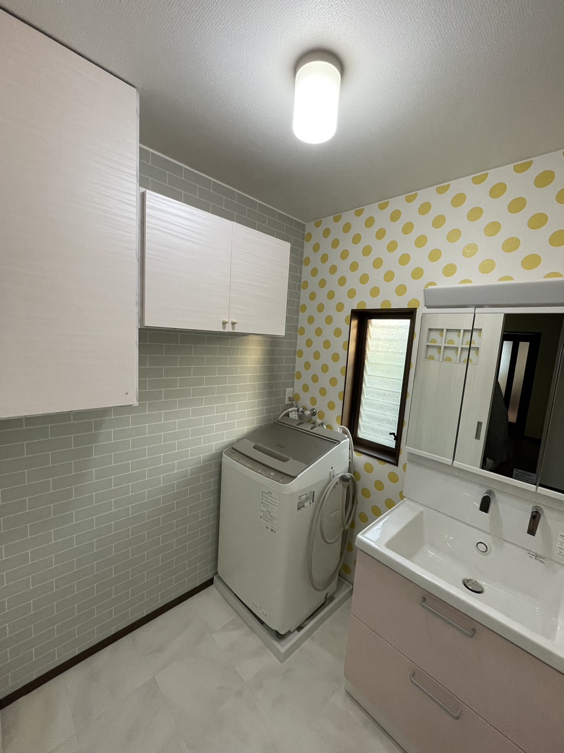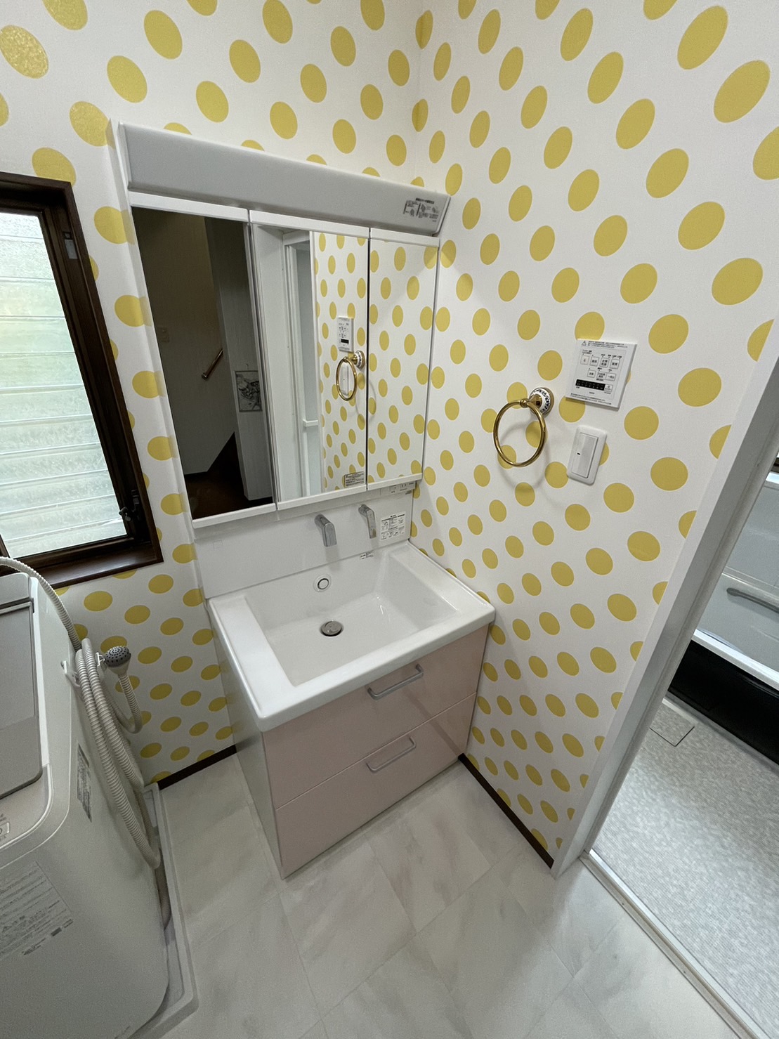 化粧台や防水パン等の設備も一新し、壁紙をポップで明るくかわいいコーディネートに。