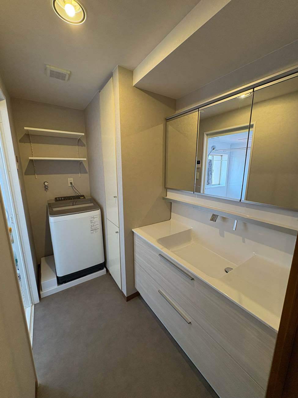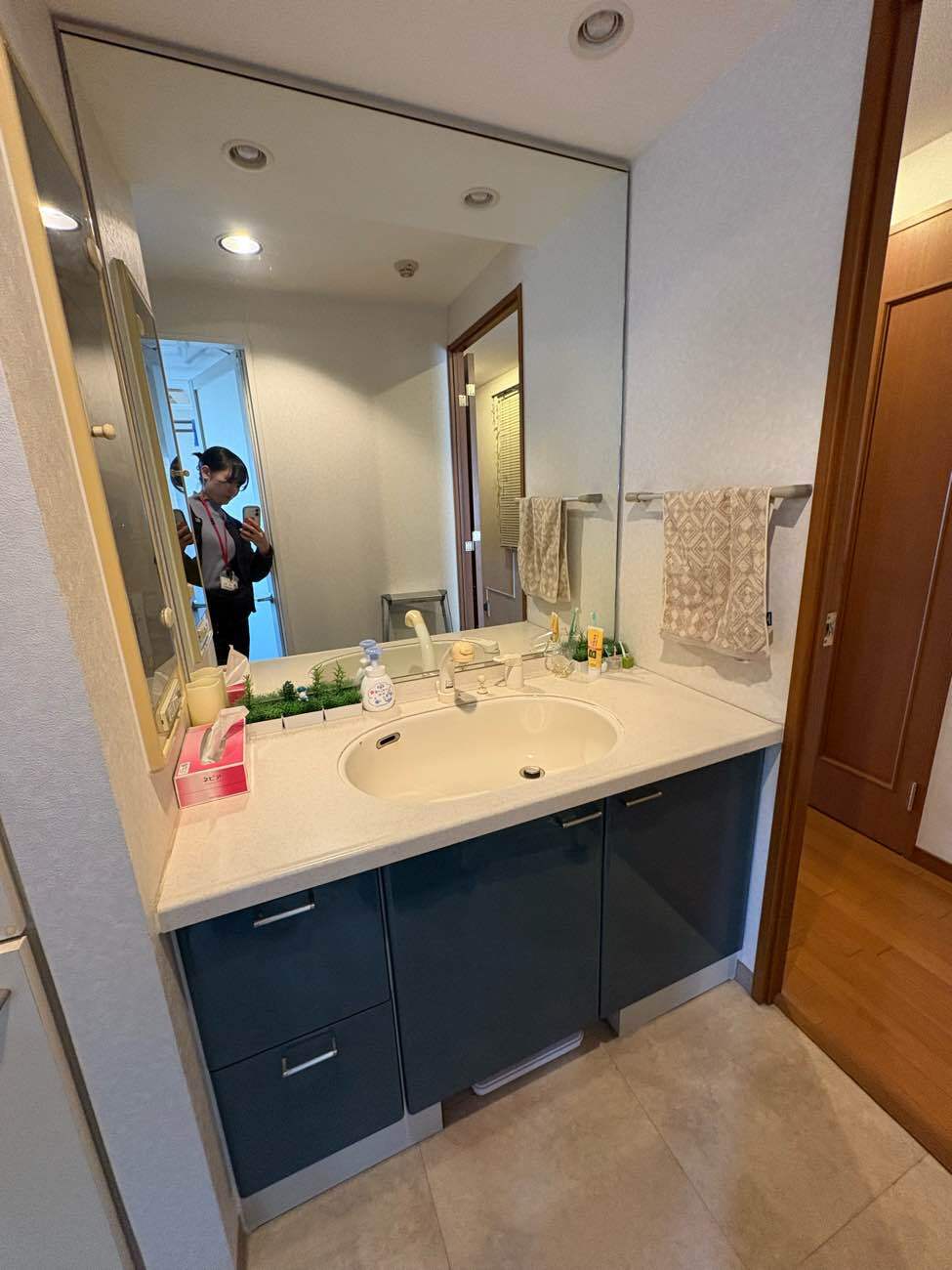 既設が間口の広い洗面台だったため、組み合わせの選択肢が多く迷われたかと思いますが、収納力も上がり使い勝手が良くなっていましたら嬉しいです。