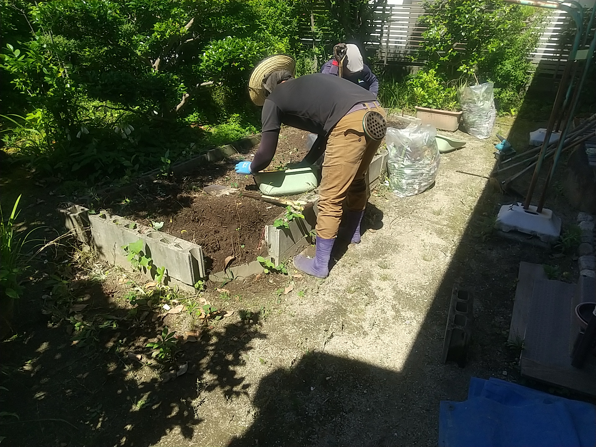 新しい花壇の雰囲気にあうように周りに芝を敷く工事も今後計画中です、素敵な洋風の花壇ができました!