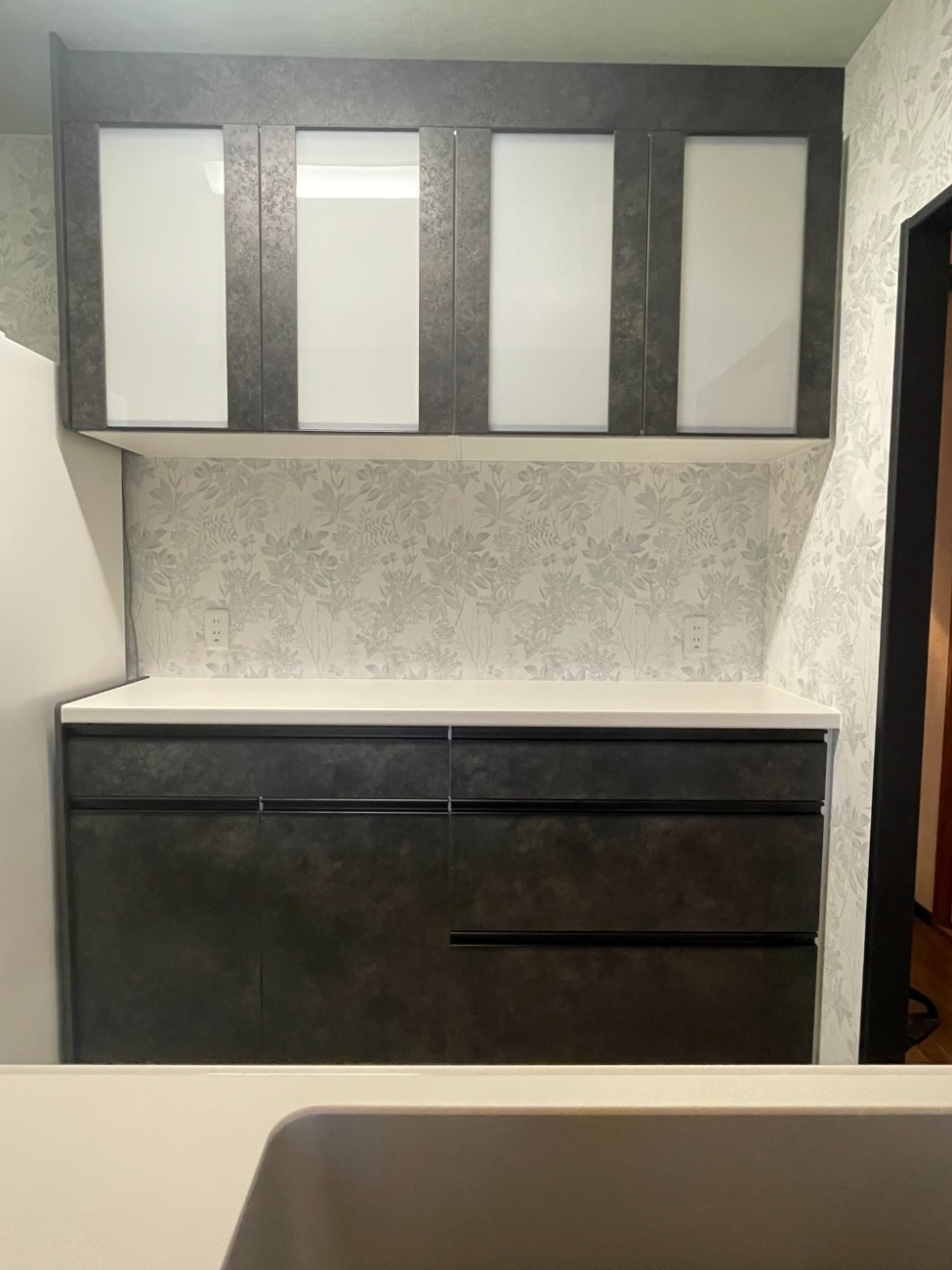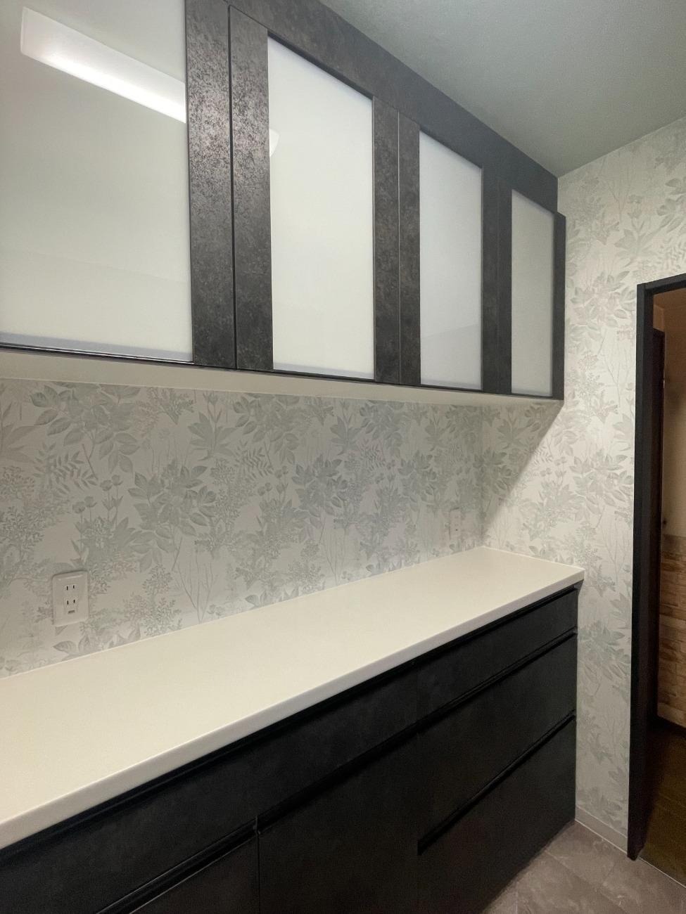 コンロやキッチン水栓やカウンターまわりの枠材もブラック色となってます。