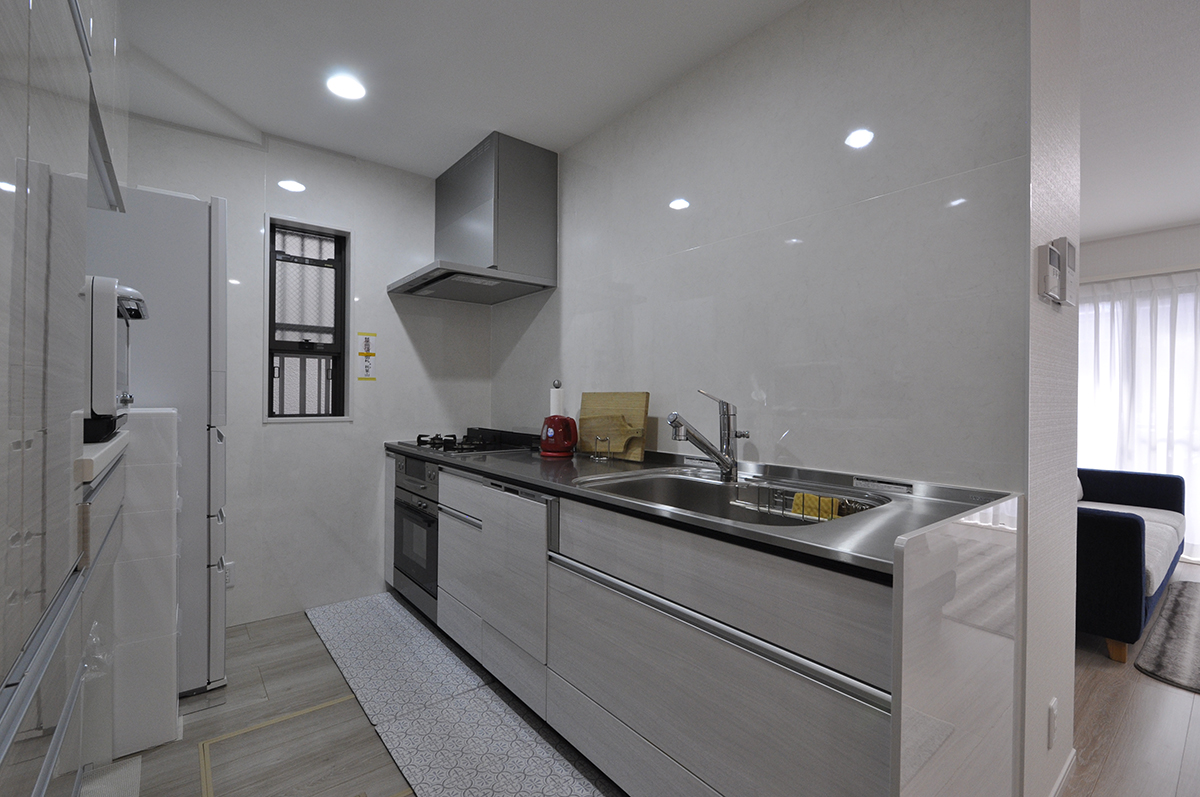キッチンの横の壁を撤去したことにより、閉鎖感のあった空間が
