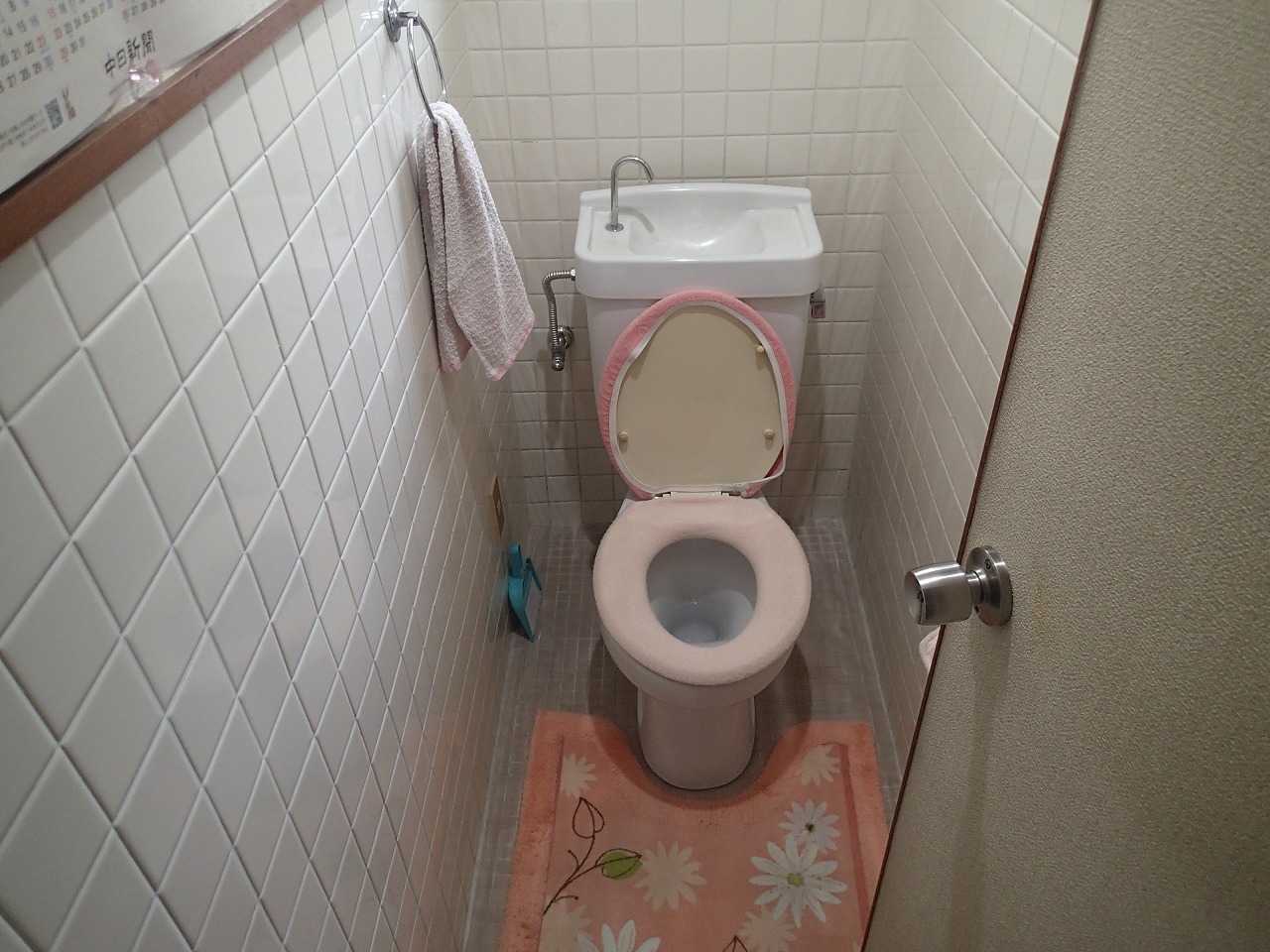 老朽化した便器と結露して表面が濡れることがある床タイルが気になる部分でした