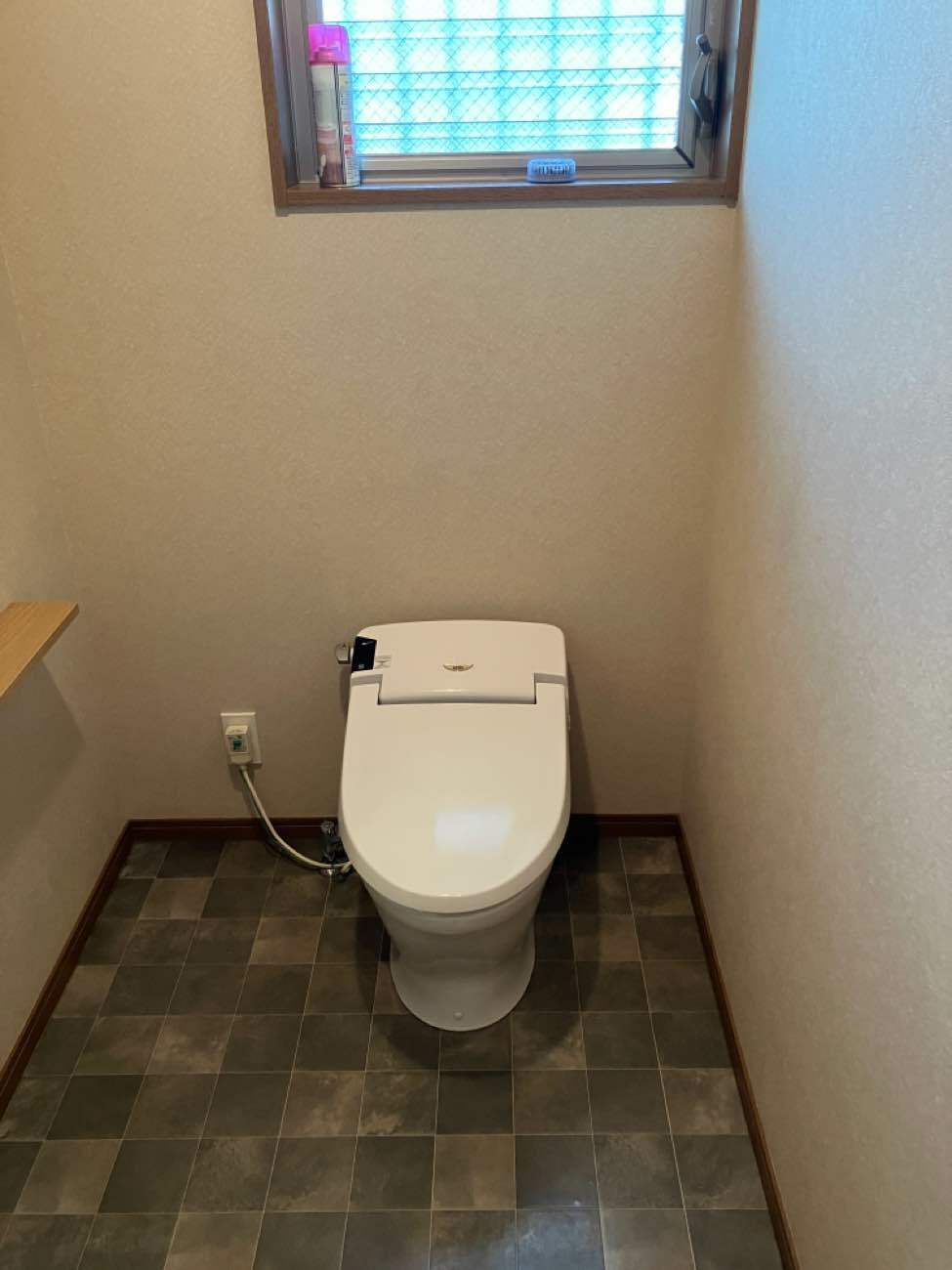 トイレの取替のみで内装の貼替を行わなかったため、既設の便器跡が残らないか念入りに調べて施工を行いました。跡も残らなかったためきれいに仕上がりました。