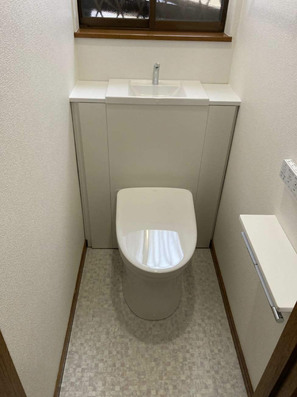白で統一された清潔感ある明るいトイレになりましたね!