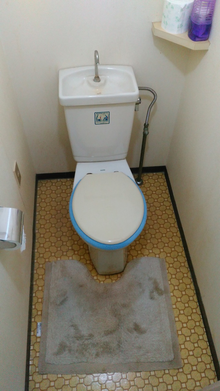 長年使われているトイレ。水の流れなども悪くなった為に取り替えることになりました。