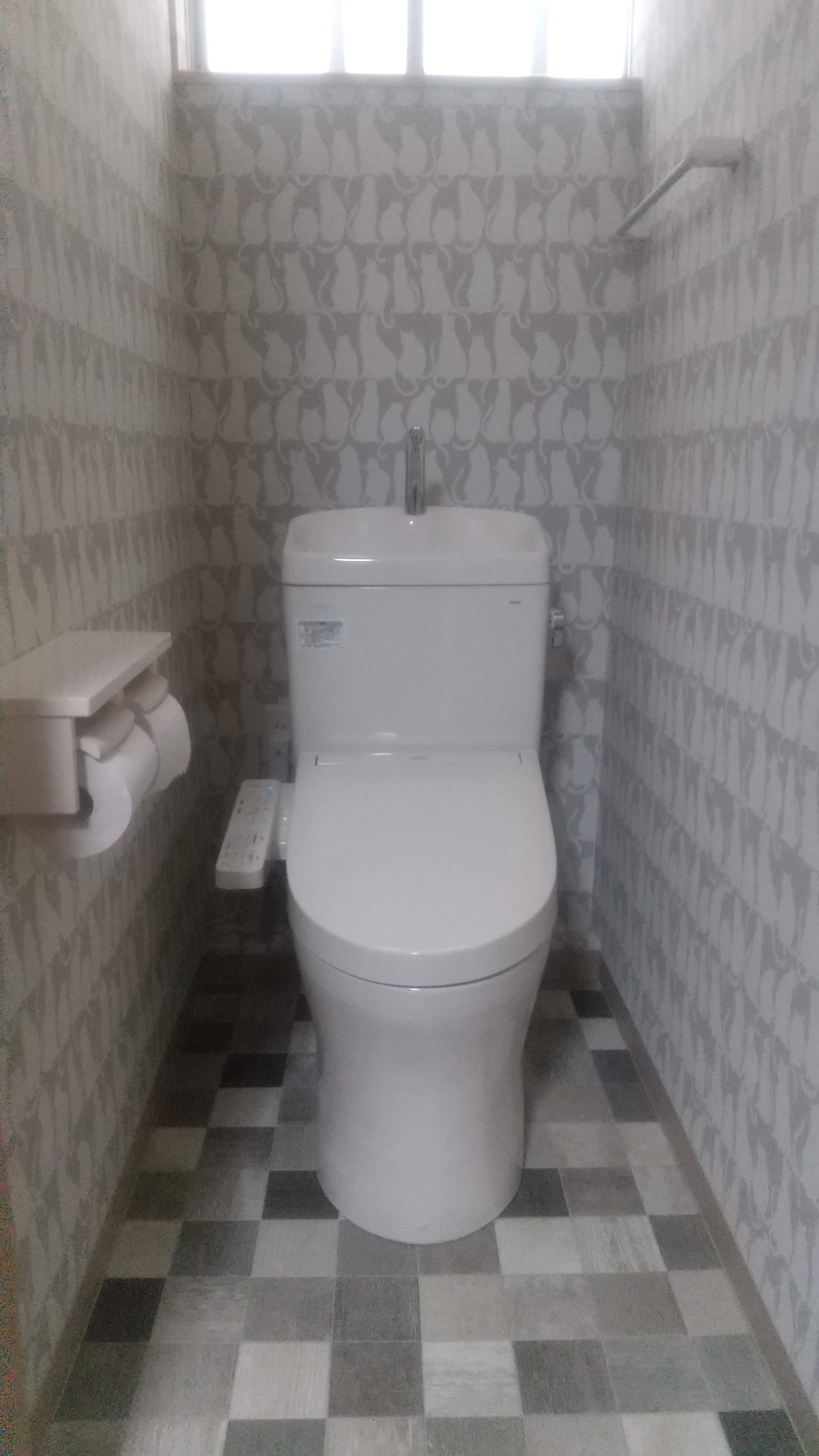 選んでいただいた猫柄の壁クロス(サンゲツ)で、更に素敵な仕上がりになりました。