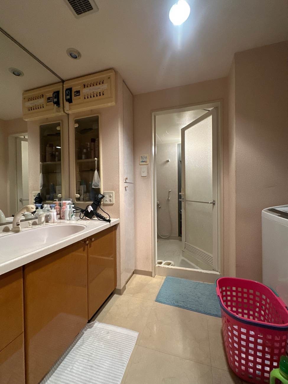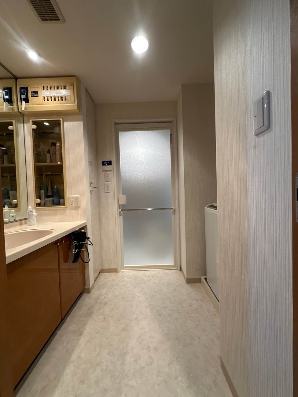 傷んでいない特注洗面台はそのままにユニットバス、脱衣室内装のリフォームとなりました。