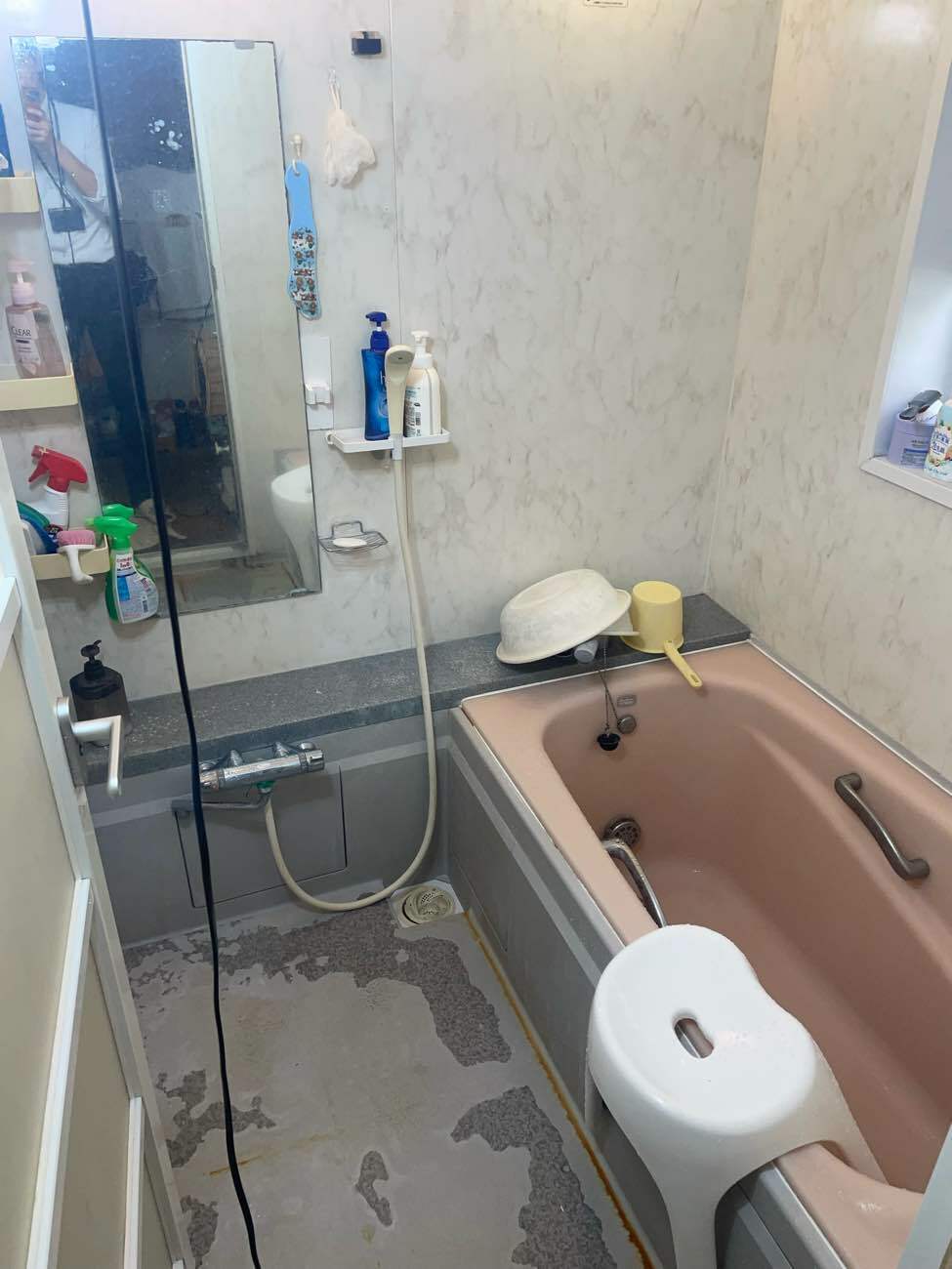 ユニットバスの対面の廊下の床が水漏れでフカフカになっている。