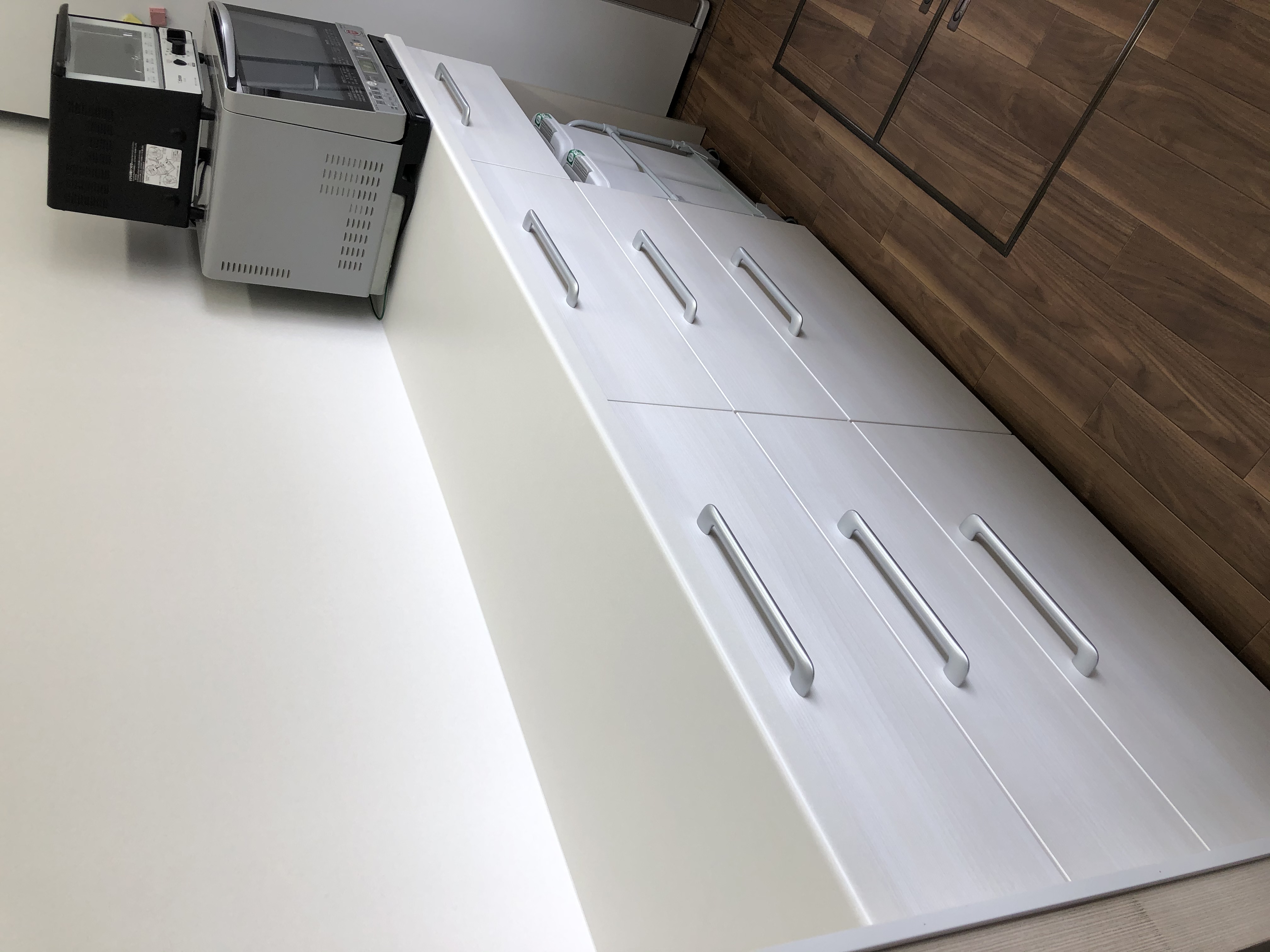 また、作業スペースも限られていたので既存の食器棚を収納に変更し、収納の上を作業スペースとして有効利用できるようになりました。