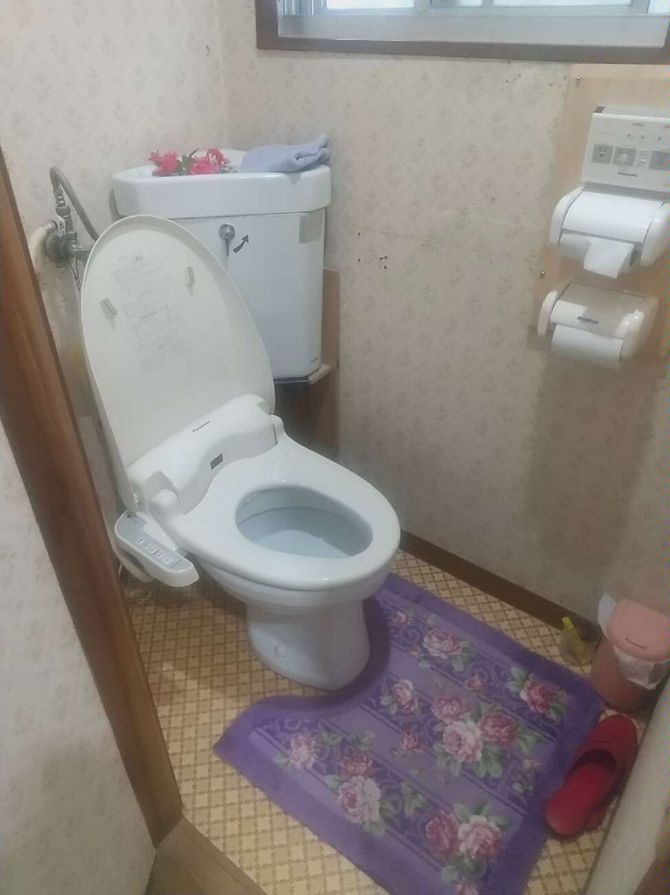 古い「隅付タンク式」のトイレを改修するご相談いただきました、戸建てにお住まいなので一日で完成できる工事が必須条件でした