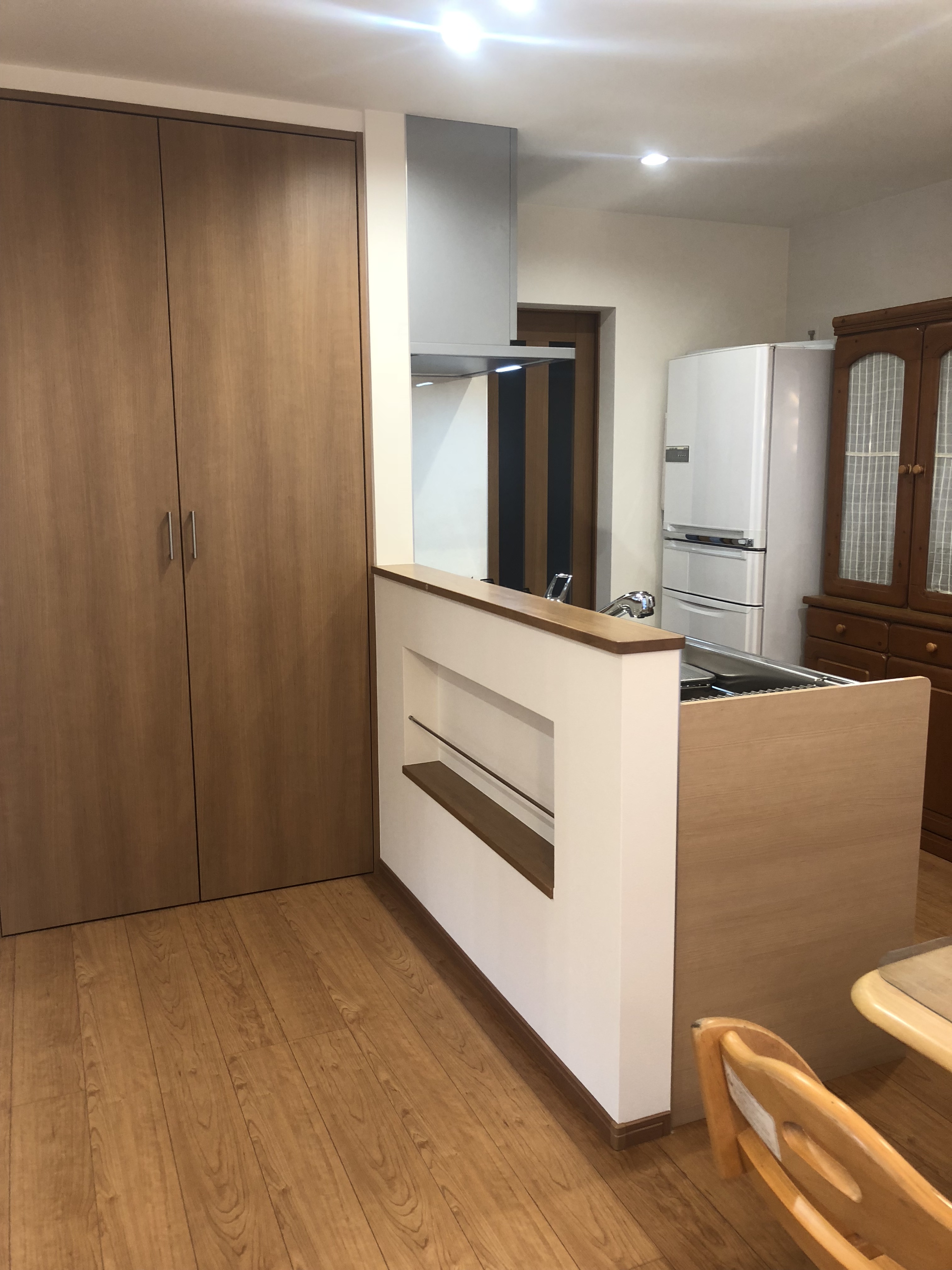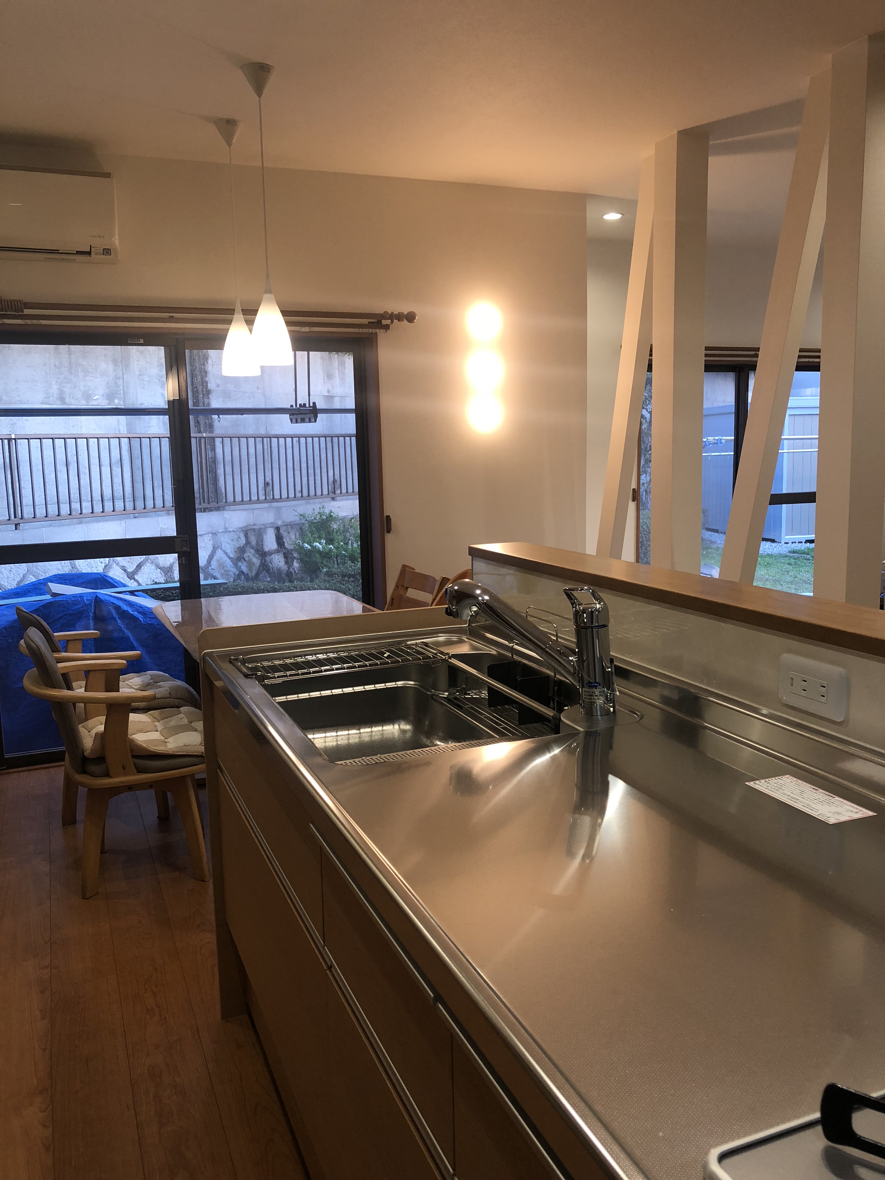 また、ご使用されていたキッチンはI型の壁付けのタイプだったので、家族とのコミュニケーションも取りにくく、小さな息子様を気にしながらの家事はとても大変でした。