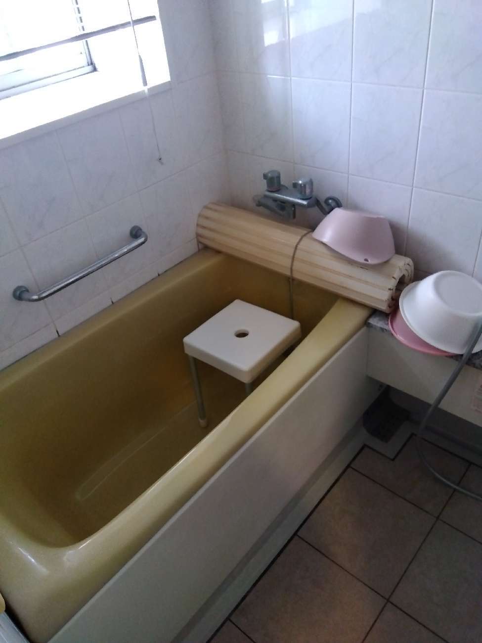 • 後方にも手すりを付けたため、風呂蓋は反対側におけるようにしました。