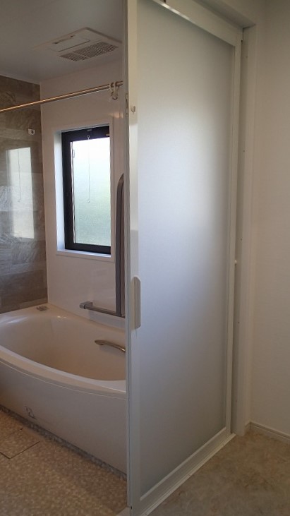 ペアガラス仕様の窓へ取替てさらにガス温水式の浴室暖房乾燥機を設置。出入り口も片引き戸タイプをセレクトして安全快適な浴室になりました。