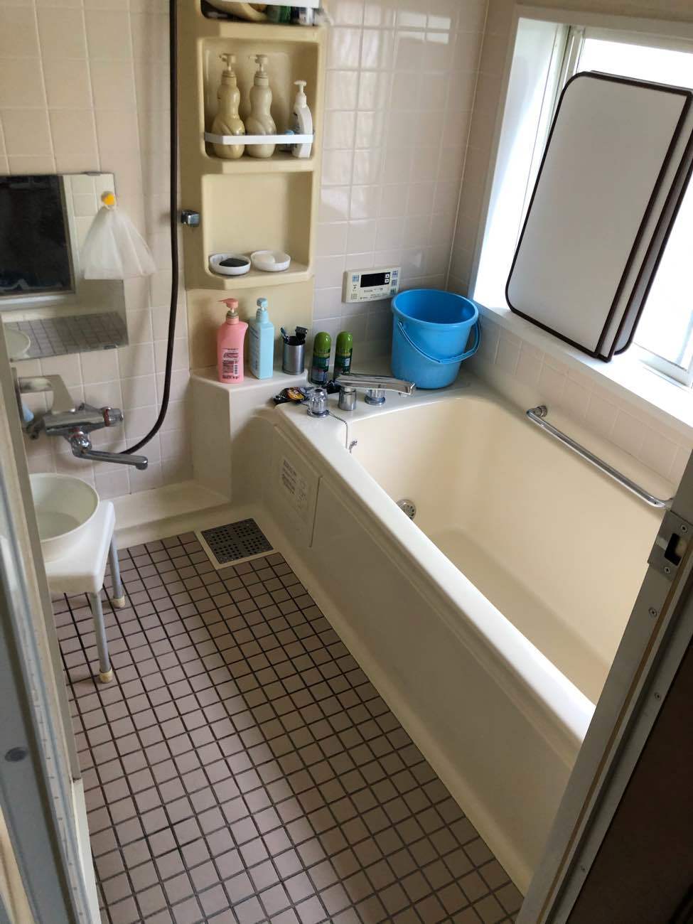 以前の浴室は床・壁のタイル張りのユニットバスでした。