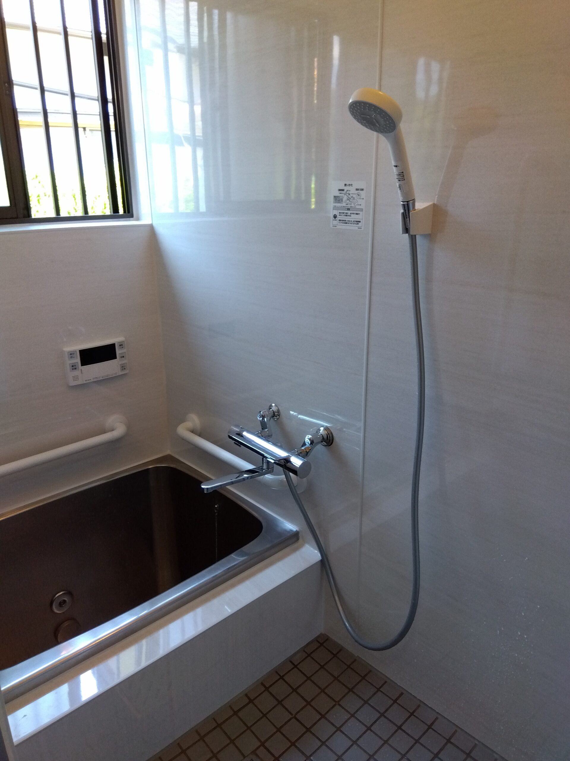 浴室のパネル工事と、ハンドルの大きなシャワー水栓への取り替え。