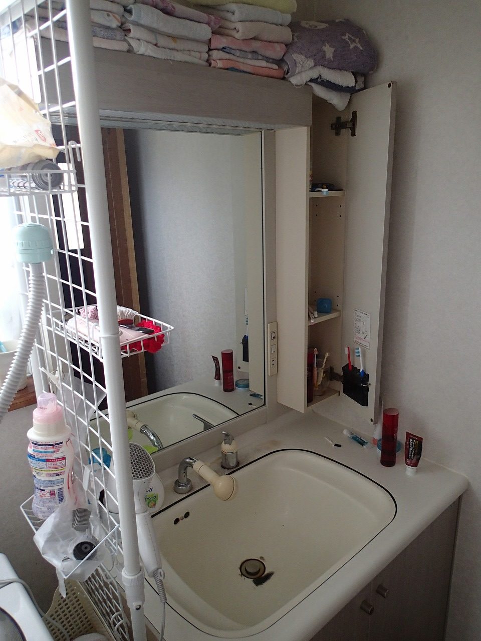 浴室リフォームと同時に古くなった洗面化粧台の取替もご検討いただきました