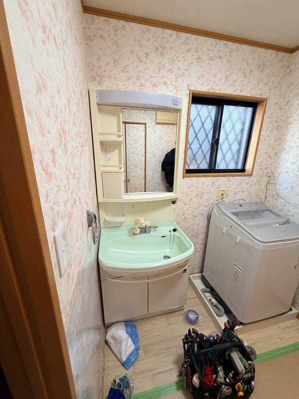 戸建てだったので、洗濯パンを撤去。嵩上げ台を設置し、洗面台との間を広く取ることができました。