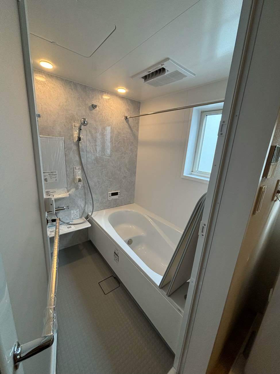 今までも白系の仕様で明るい空間でしたが、新しい浴室はさらに光沢感もあり