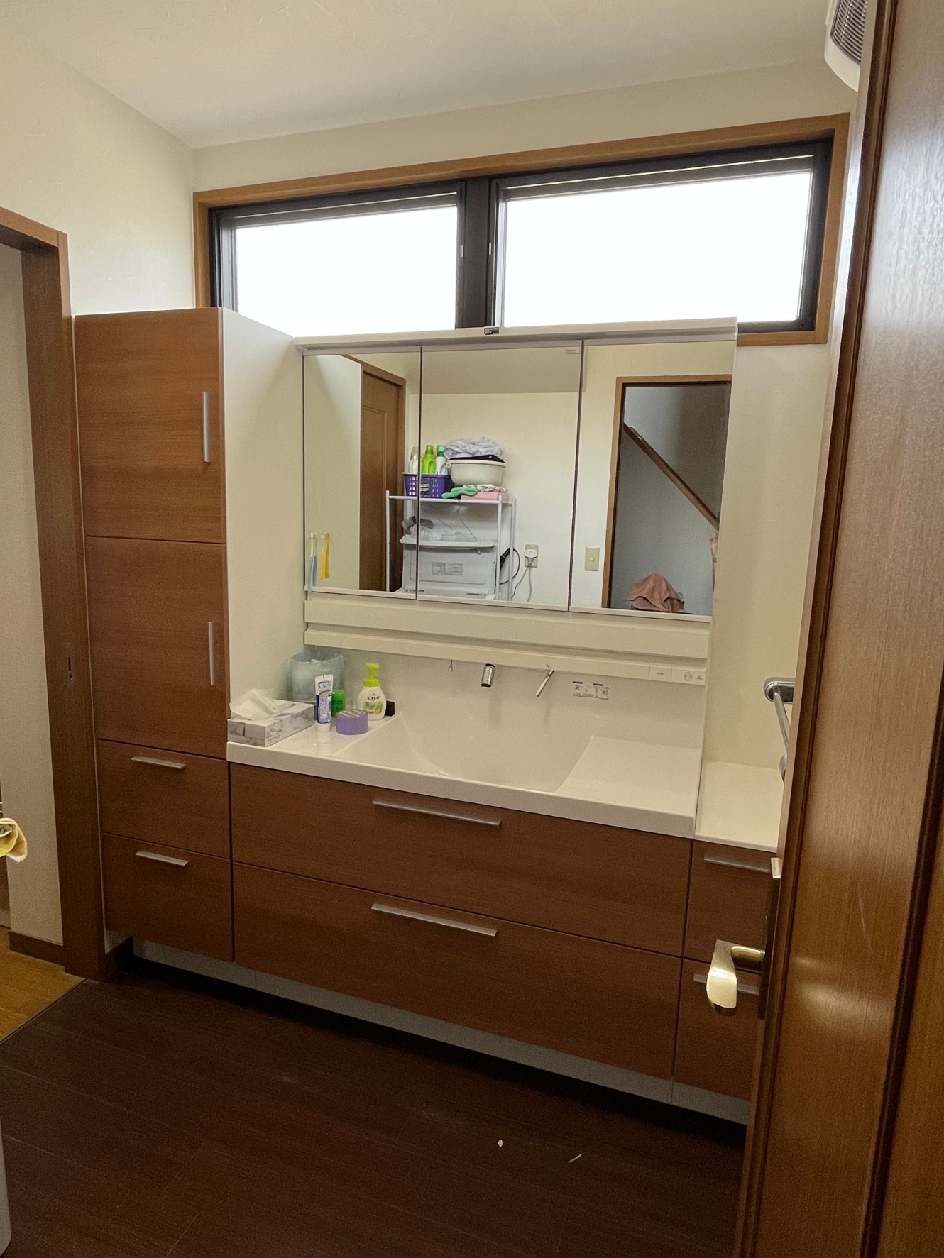 元々大きな洗面台を使われていて既製のサイズ外のものでしたが、扉面材を合わせ