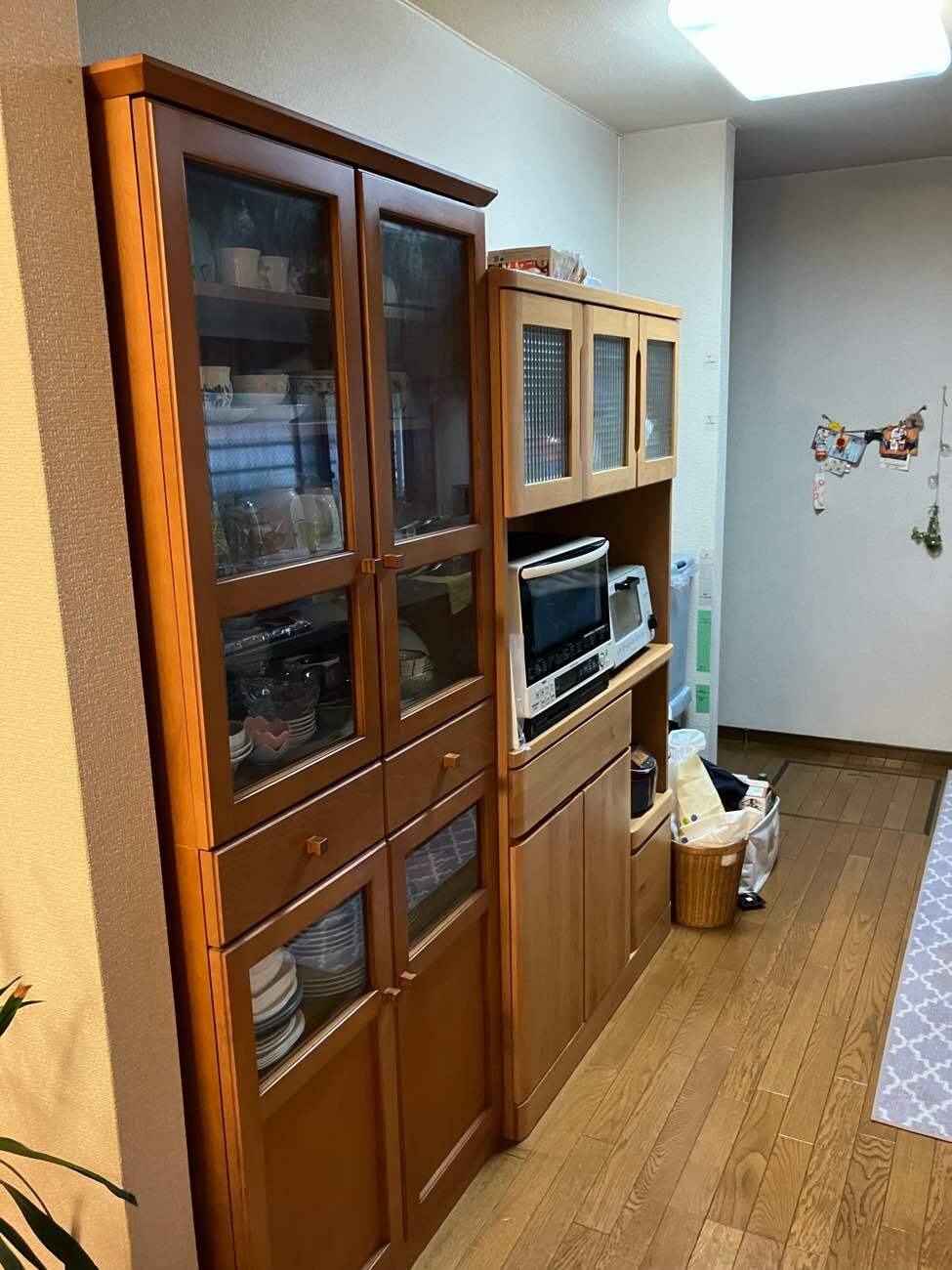 既存の両袖壁の奥行をカップボードの奥行に合わせて造作することで、収まりも良くすっきり見えるようにしました。