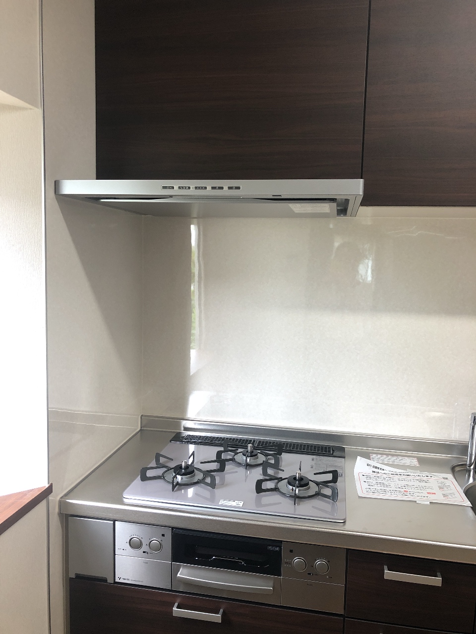 ビルトインコンロとレンジフードは連動タイプのため、点火するとレンジフードも自動で動きます。