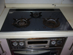 10年程使用したガラストップビルトインコンロ。古くなり点火しないことも度々あるようになってきた。