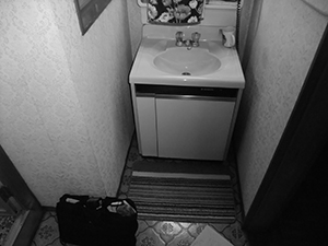 当時スペースに収まるちょうど良い洗面化粧台がなかったようで、両サイドの隙間にはねる水がとても気になっていらっしゃいました。