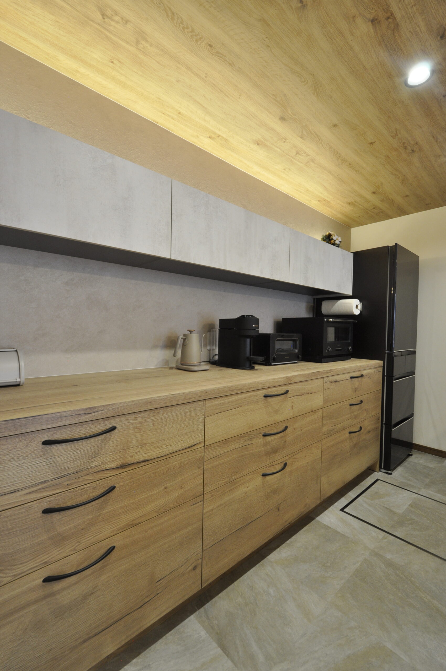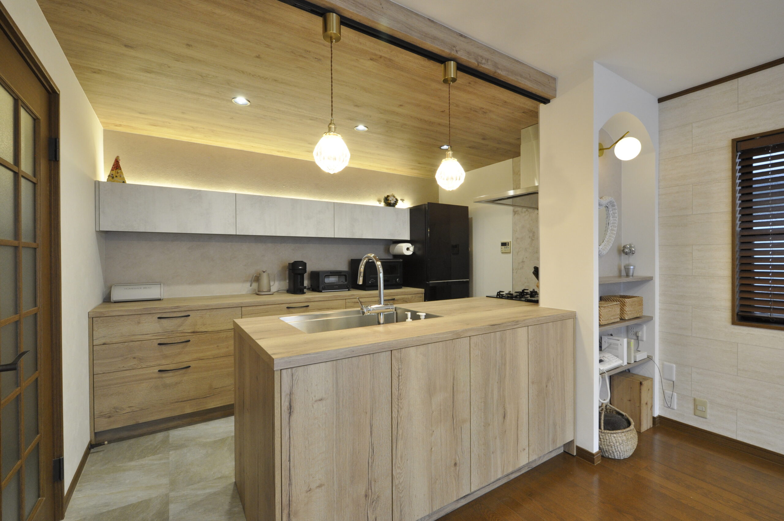 L型キッチンで使い勝手良く、収納を増やし、開放感あるキッチンにしたいとのことでした。