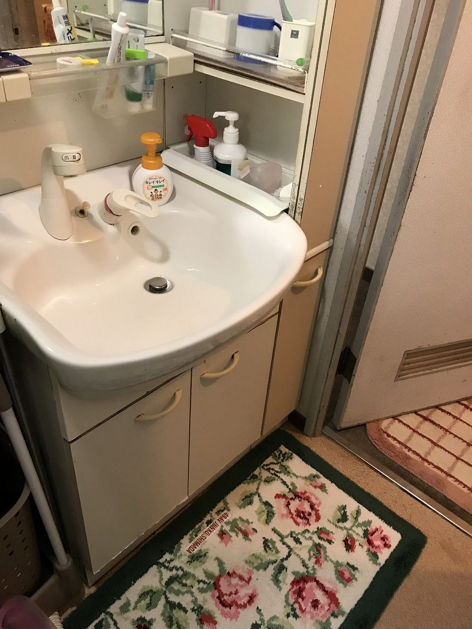 洗面台と収納の組み合わせでご使用されていました。浴室リフォームと一緒にご依頼いただきました。