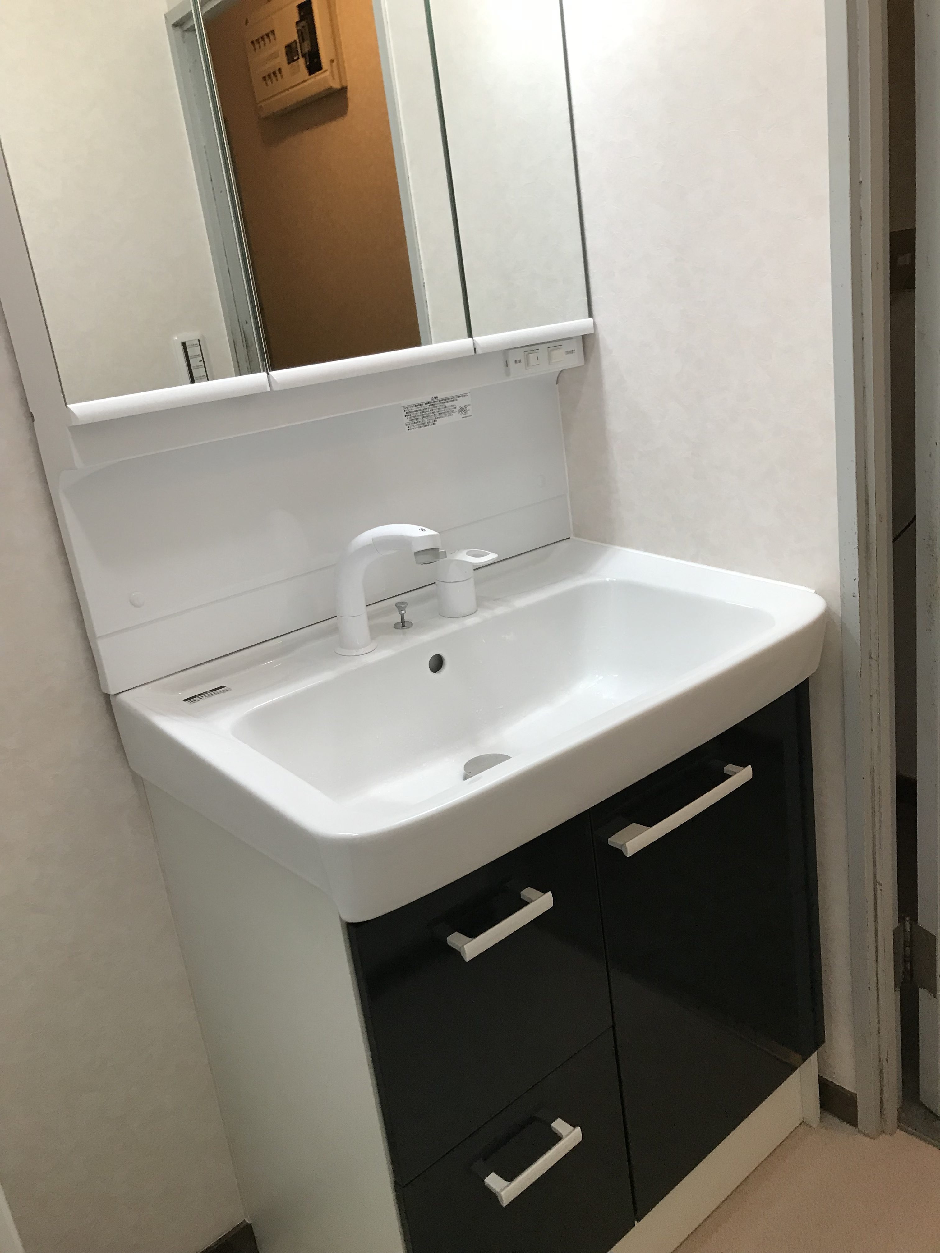 洗面台と収納の組み合わせでご使用されていました。浴室リフォームと一緒にご依頼いただきました。