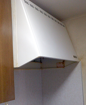 取替え前のレンジフードはプロペラ式でお掃除が大変でした。