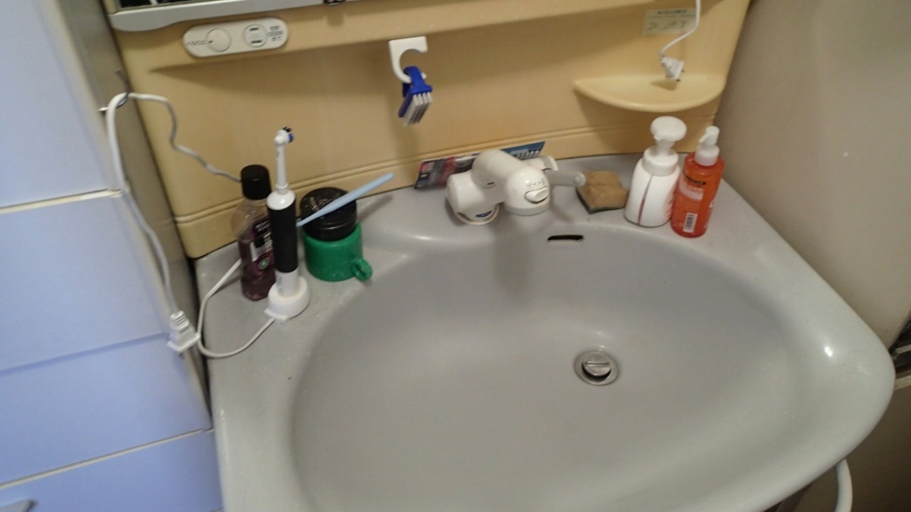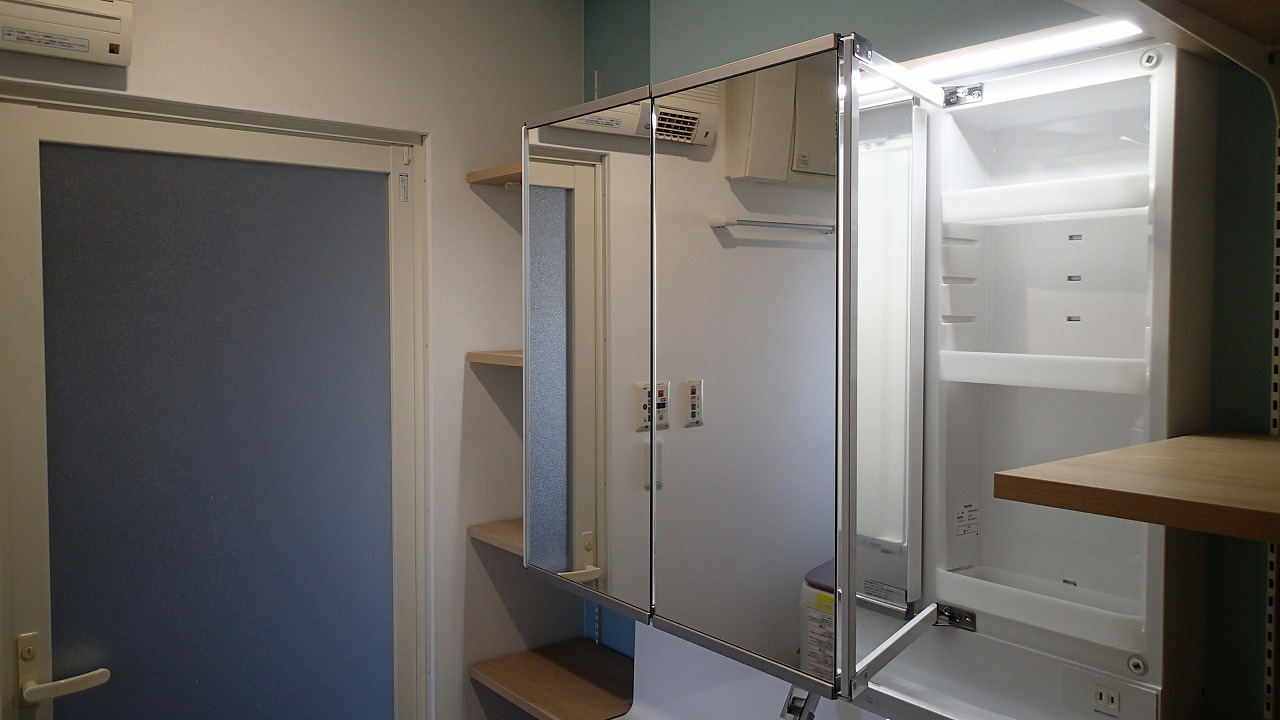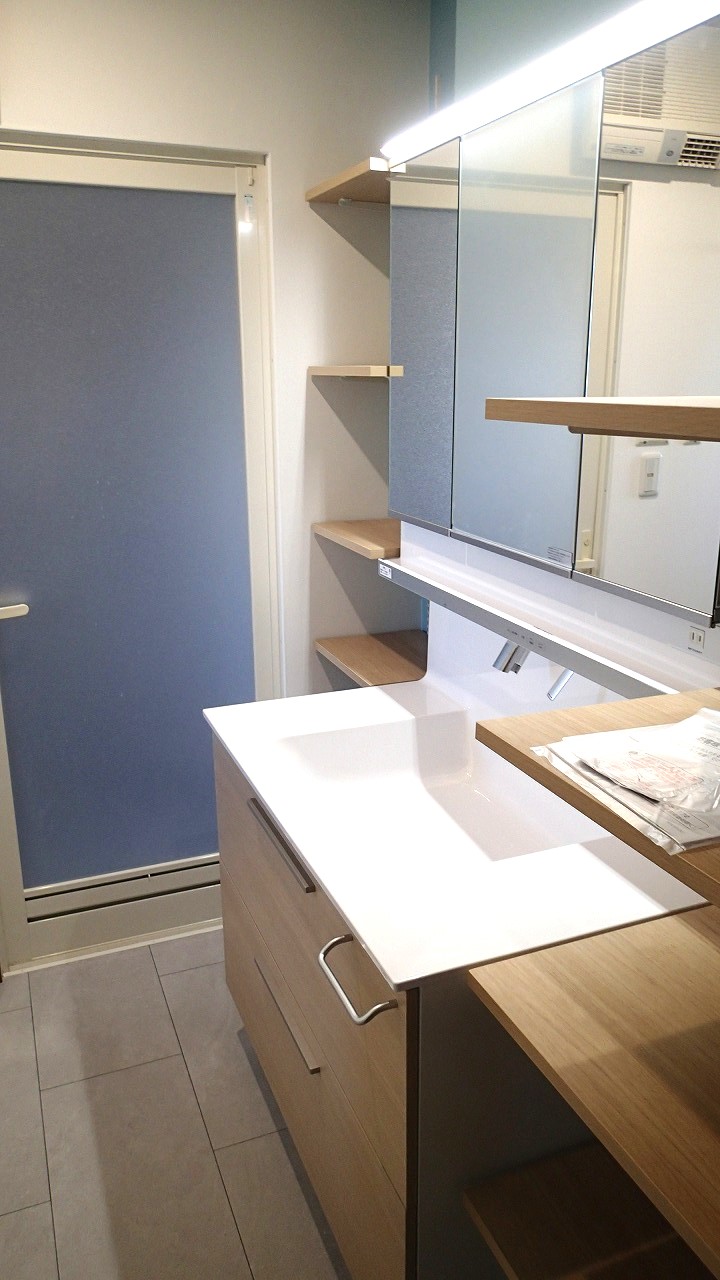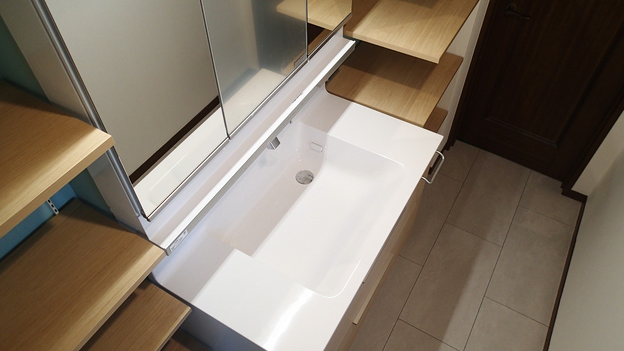 既に浴室リフォームは施工済みだったが洗面化粧台は新築時のままの古いものだった。また、暗いイメージを変えたかった。