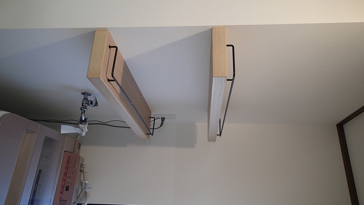 洗面化粧台の左右には可動棚を設置、洗濯機横にも洗剤などを置けるリブニッチを2段で設置しました。