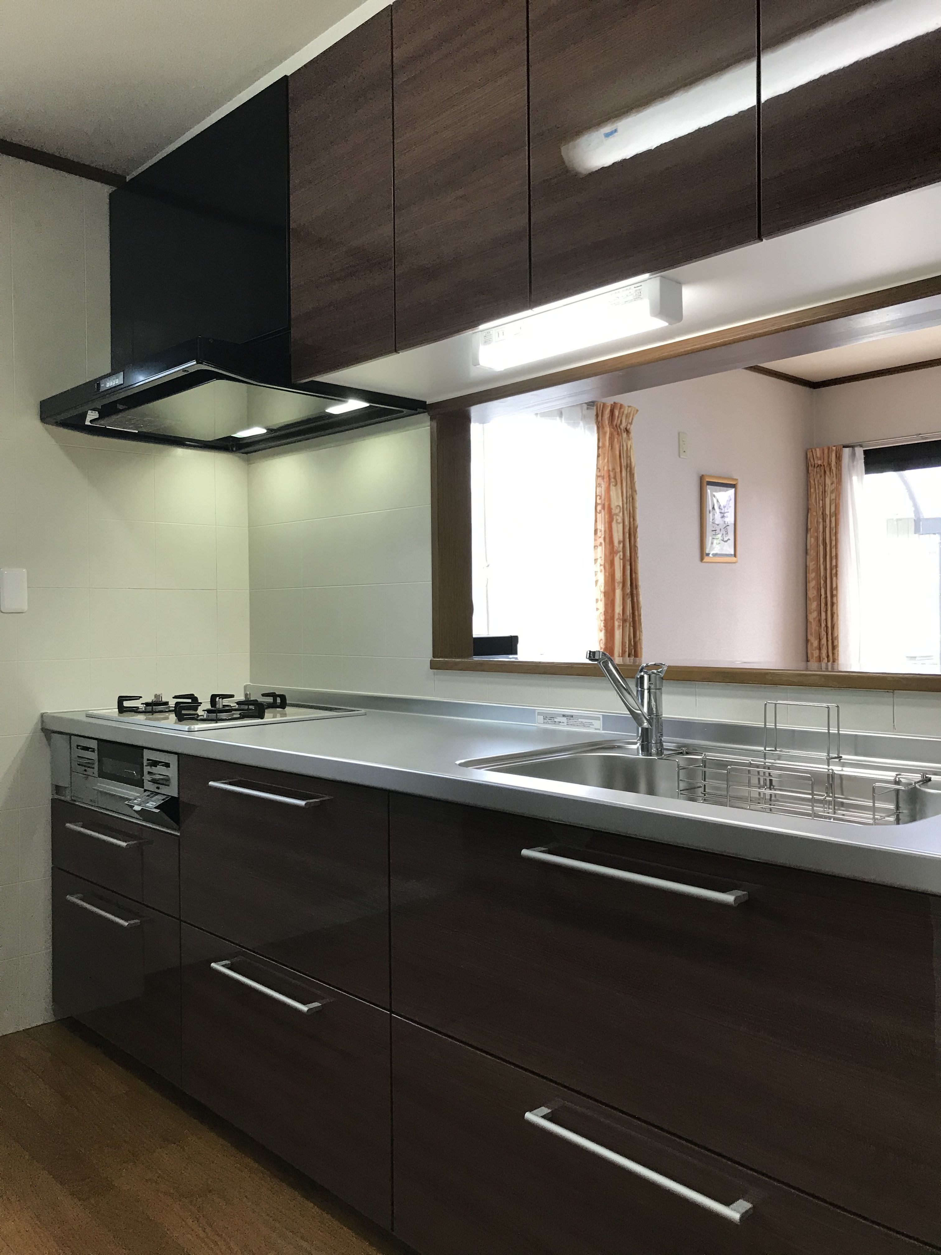 キッチン扉材をグレードUPし、手入れしやすく、傷みにくいものにしました。鏡面仕上げの扉材でキッチンに高級感がでました。