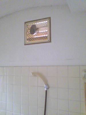 タイル壁の在来浴室によく付いている換気ガラリ通気口の開口を利用して取り付けが出来ます。
